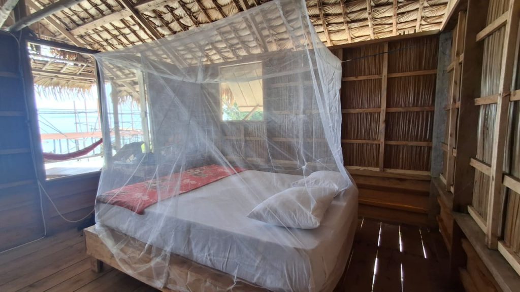Mosquito nets are provided on all beds, and sea breezes help keep evenings comfortable.